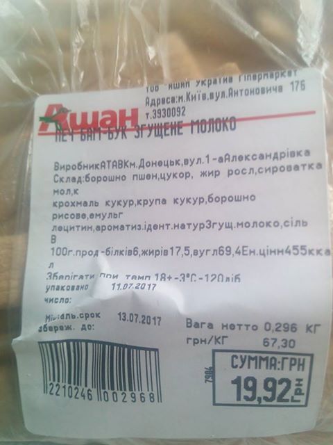 Киевский "Ашан" уличили в торговле продукцией, которая произведена на оккупированном Донбассе.