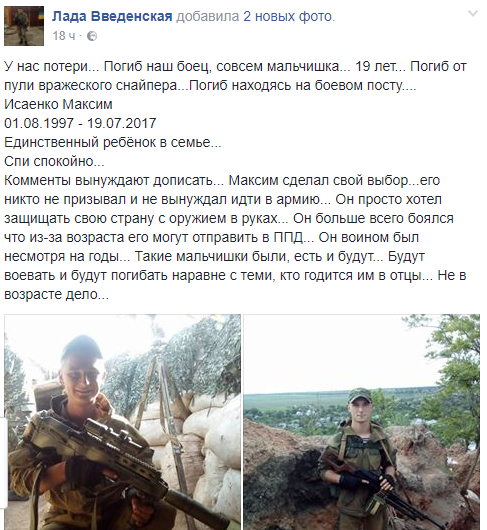 Украина потеряла еще одного сына: в зоне АТО погиб 19-летний боец ВСУ Максим Исаенко.