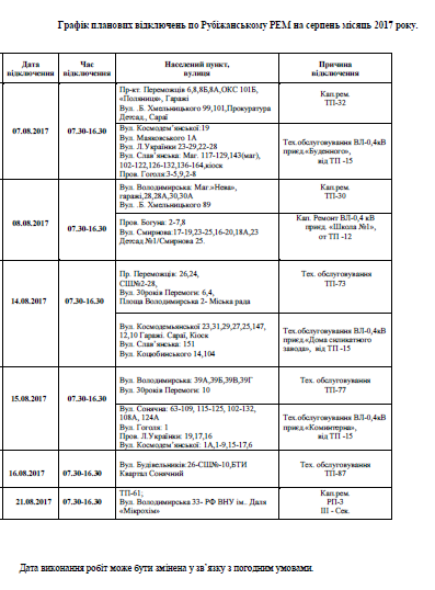 График отключений: