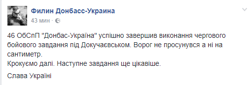 Об этом на странице в Facebook пишет комбат 46 ОбСпН Вячеслав Власенко ("Филин")