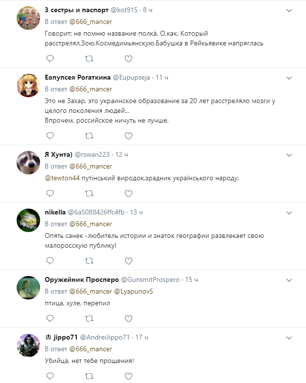 "Я много помню случаев из истории, когда по приказу Сталина брали в плен кого-то из этого полка, не помню название, который расстрелял Зою Космодемьянскую", - рассказал Захарченко.