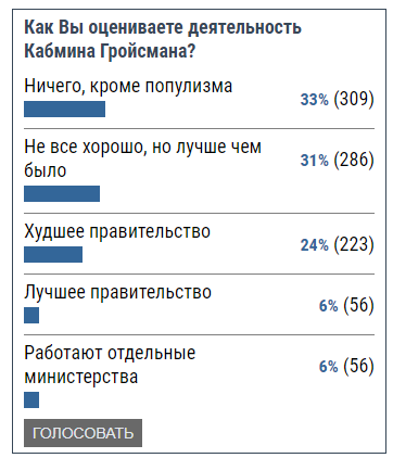 На сайте Трибун, в течение недели читатели могли принять участие в опросе относительно деятельности правительства при руководстве Гройсмана.