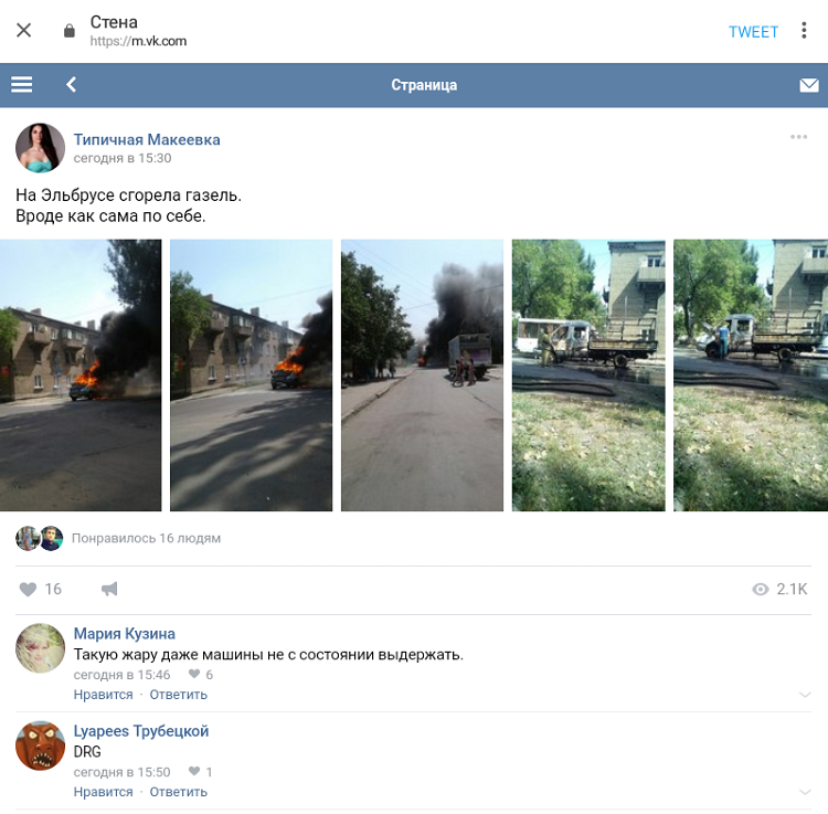 Как сообщают соцсети, в оккупированной Макеевке от жары загорелся автомобиль.
