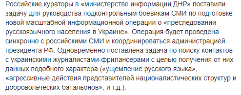В ближайшее время со всех «Л/ДНР» и Российских телеканалов будет распространяться информация о том, как в украине ущемляют и преследуют русскоязычных.