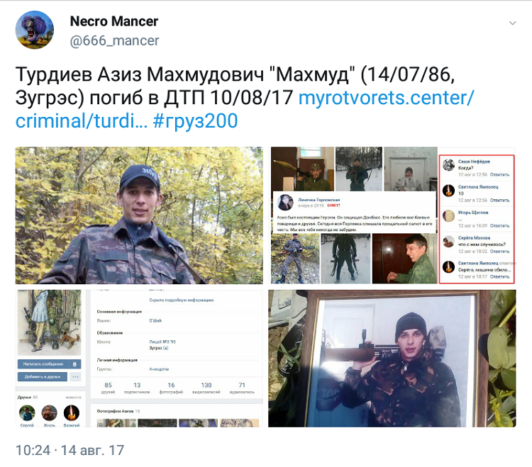 Боевик с позывным «Махмуд» умер 10 августа.
