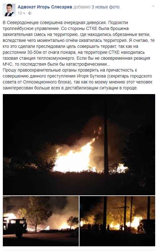 16 августа троллейбусное управление в городе Северодонецке было объято пламенем.
