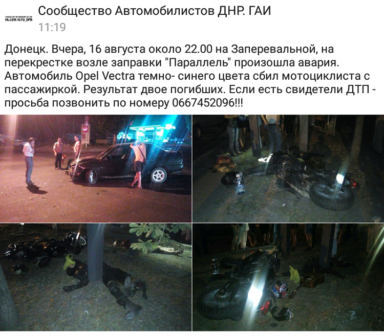 В Донецке водитель автомобиля Opel Vectra сбил насмерть мотоциклиста и пассажира, - сообщают соцсети.