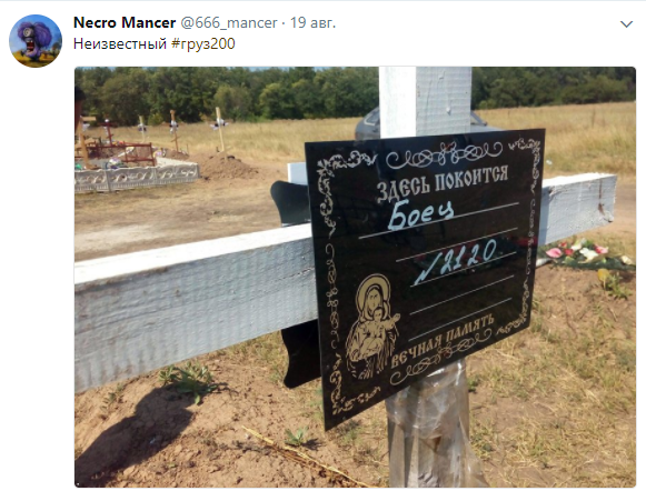 Блогер Necro Mancer опубликовал в сети снимок одного из кладбищ ОРДЛО. На фото показана могила террориста НВФ "ЛДНР", который оставил после себя лишь номер 2120.