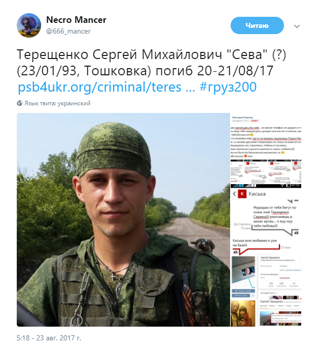 Терещенко Сергей Михайлович с позывным «Сева» был ликвидирован предположительно 20-21 августа.