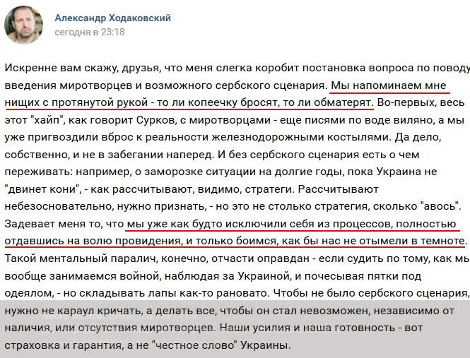 Основатель НВФ "Восток" группировки "ДНР" Александр Ходаковский беспокоится из-за возможного введения миротворцев на Донбасс.