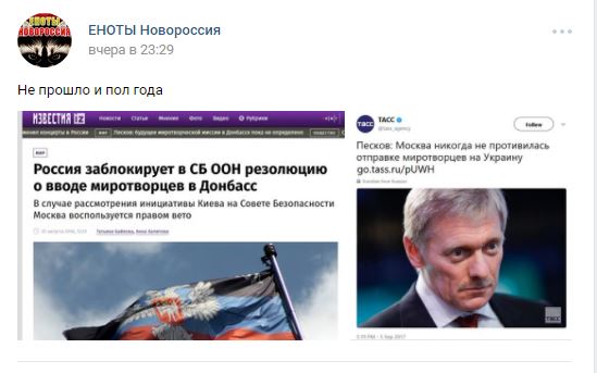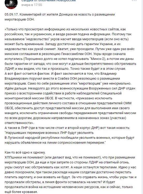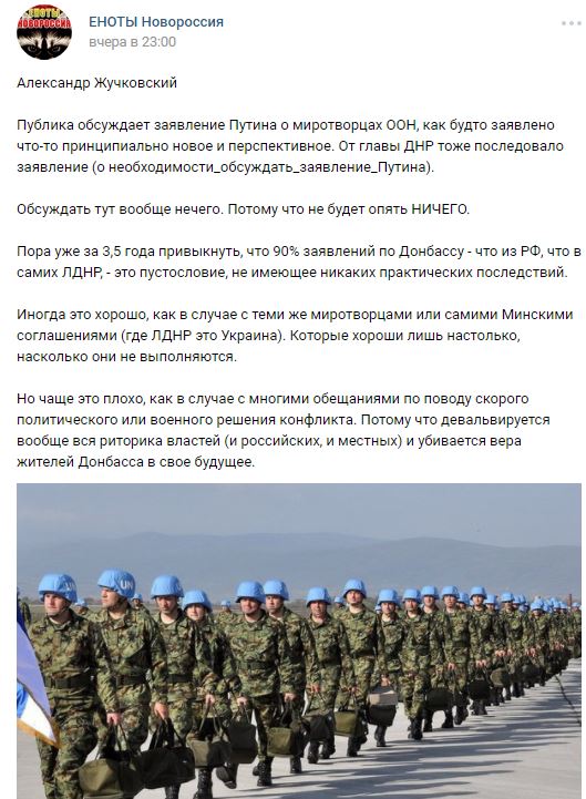 Поклонники "русского мира" на оккупированном Донбассе разочарованы заявлением президента РФ Владимира Путина о возможном введении миротворцев ООН на Донбасс.