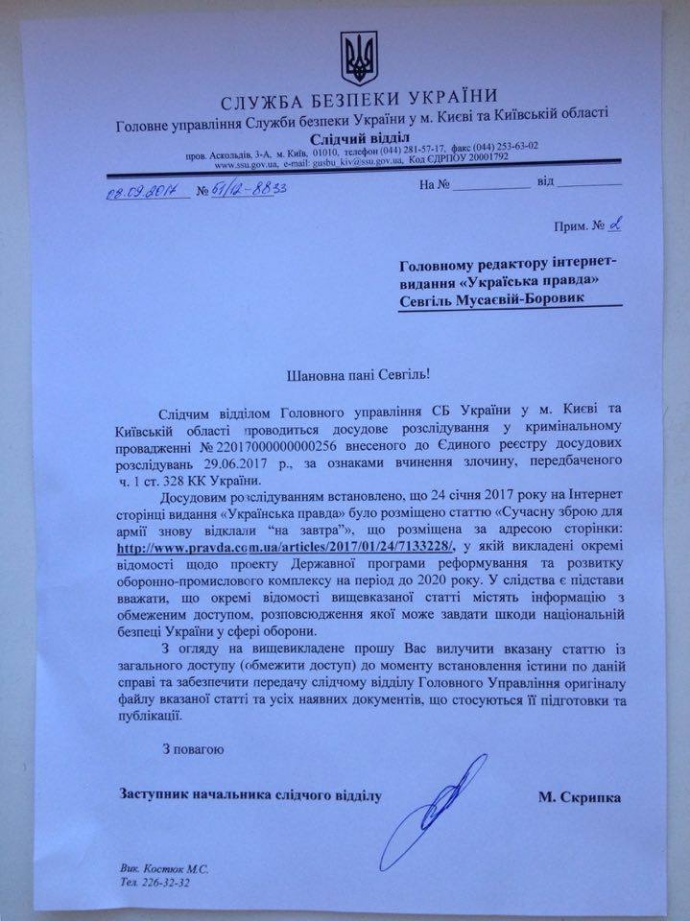 Сотрудники СБУ пришли в редакцию "Украинской правды".