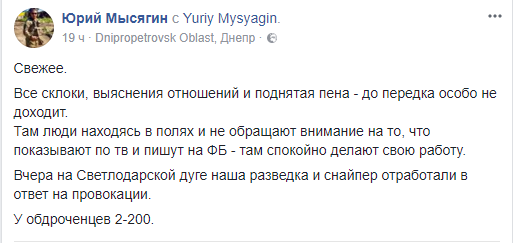 Соответствующей информацией поделился в Facebook волонтер Юрий Мысягин, передает "Трибун".