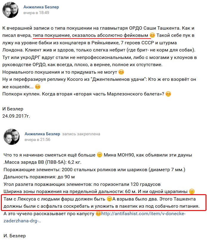 "Там с Лексуса с людьми фарш должен быть. А взрыва было два. Этого "Ташкента" должны были с асфальта соскребать и уложить в пакетик из под собачьего питания", - говорится в сообщении.