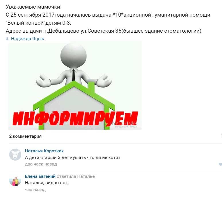 Жители оккупированного Дебальцево возмущены, ведь разрекламированная гуманитарка из РФ достается не всем. Так, помощь положена только детям до 3-х лет.