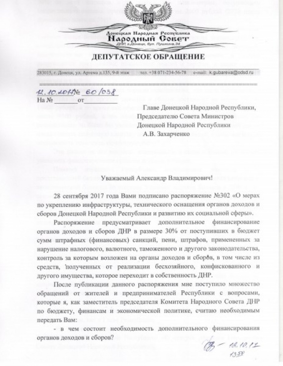 Так, "депутат" и жена небезызвестного Павла Губарева Екатерина сделала запрос на имя "главы" псевдореспублики о целесообразности выделения таких средств именно "министурству" Тимофеева.