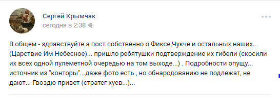 Так стало известно, что были ликвидированы боевики "Фикса"и "Чукча".
