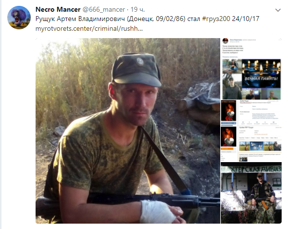 Донецкий боевик Рущук Артем Владимирович был уничтожен 24 октября.