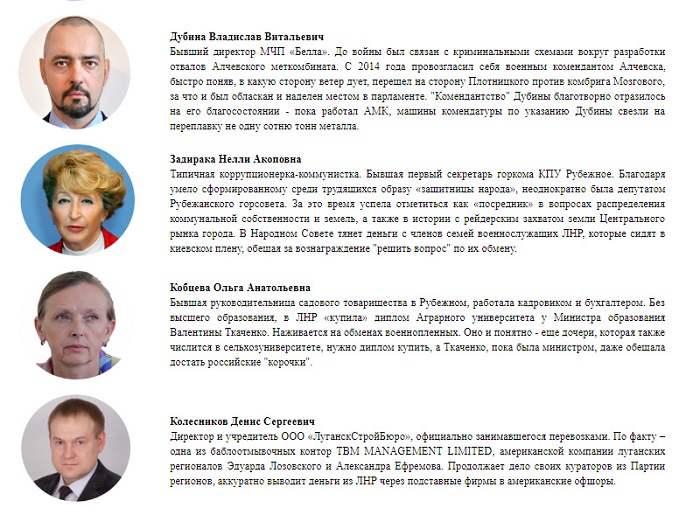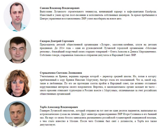 На сайте участников движения "Мир Луганщине" опубликованы детали из их биографий, в числе которых, коррупция, растрата бюджетных средств и нетрадиционные сексуальные отношения.