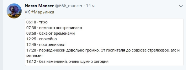 В районе Авдеевки, Березового, Каменки , Невельского и Водяного противник вел огонь из стрелкового оружия и гранатометов.