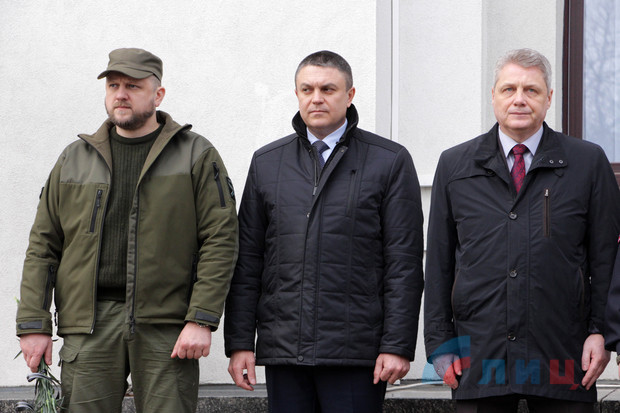 В мероприятии приняли участие и.о. главаря "ЛНР" Леонид Пасечник, председатель "совмина" Сергей Козлов, главарь "МВД ЛНР" Игорь Корнет, а также другие "министры", руководители "ведомств" и сообщники покойного.