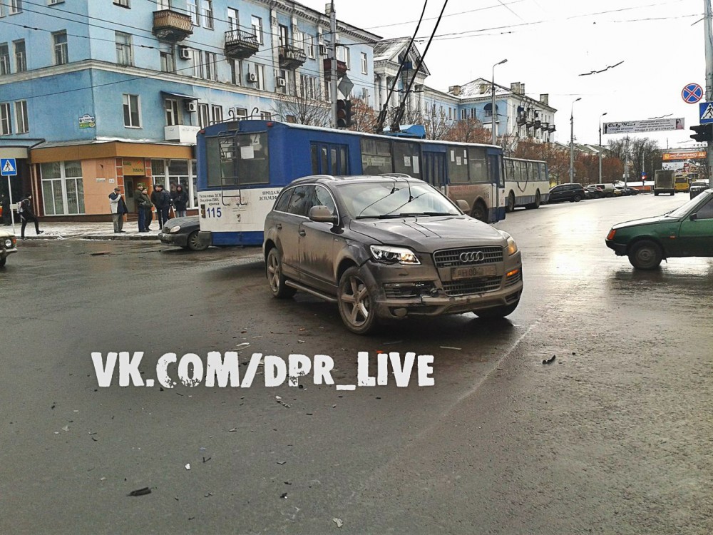 "Макеевка. Там же в 11 часов! Ёще не разъехались те участники ДТП. Джип Ауди и Опель"