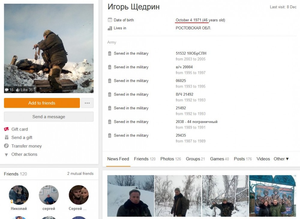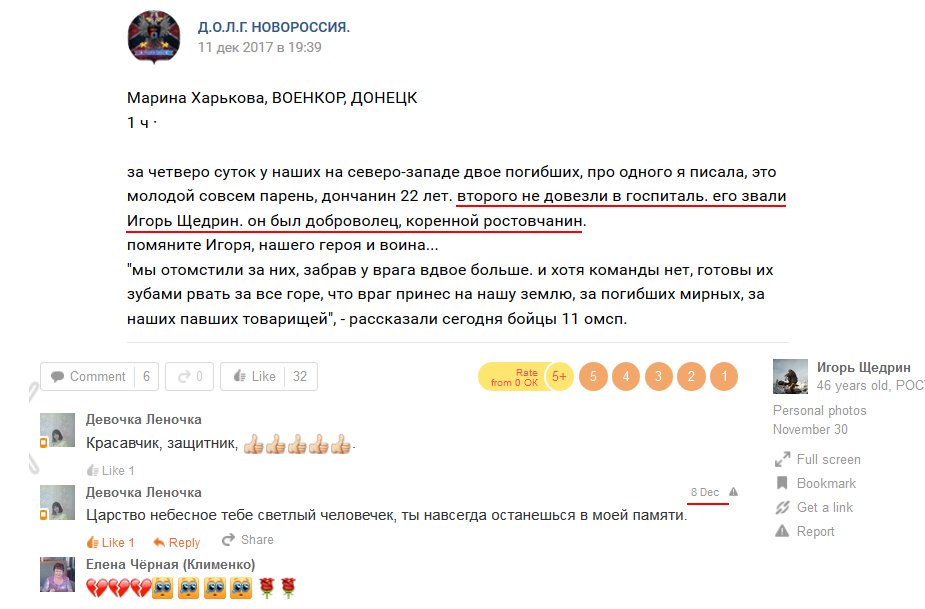 По информации блогера Necro Mancer, российский наемник Игорь Щедрин 1971 года рождения был уничтожен 8 декабря 2017 года.