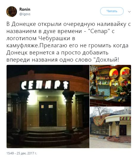 Прямо в центре оккупированного Донецка открыли заведение с незатейливым названием "Сепар".