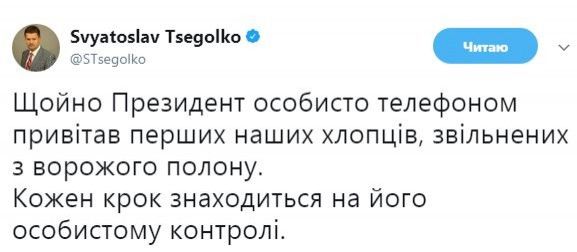 Как отмечает Цеголко, каждый шаг в обмене пленными находится на личном контроле у Порошенко.