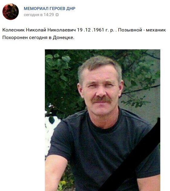 По информации соцсетей, Колесник похоронен 16 января, в Донецке.