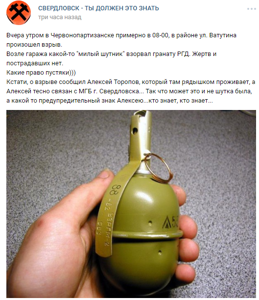 "Возле гаража какой-то милый шутник" взорвал гранату РГД. Жертв и пострадавших нет", - сказано в сообщении.