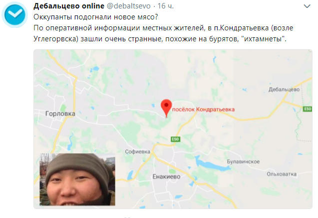 "По оперативной информации местных жителей, в п.Кондратьевка (возле Углегорска) зашли очень странные, похожие на бурятов, "ихтамнеты", - сказано в сообщении.