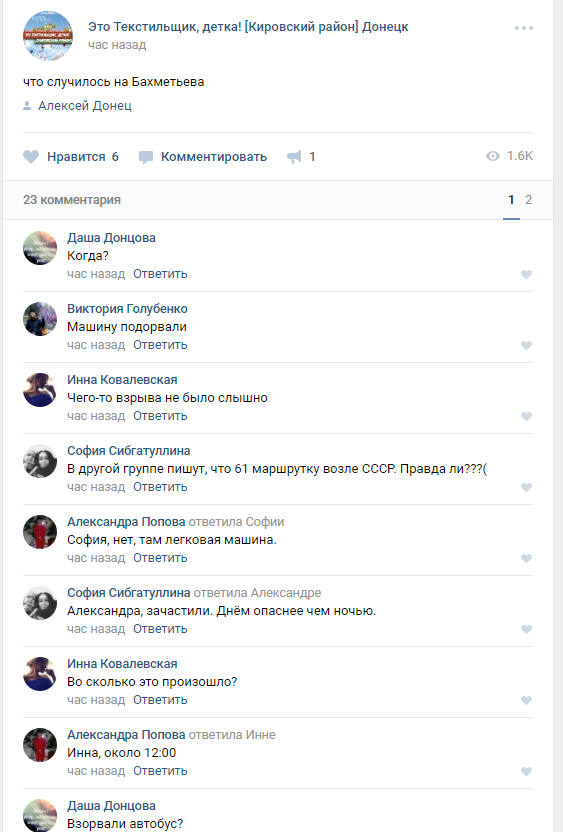 Одни дончане пишут, что взорвался автомобиль, другие - что автобус.