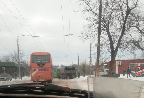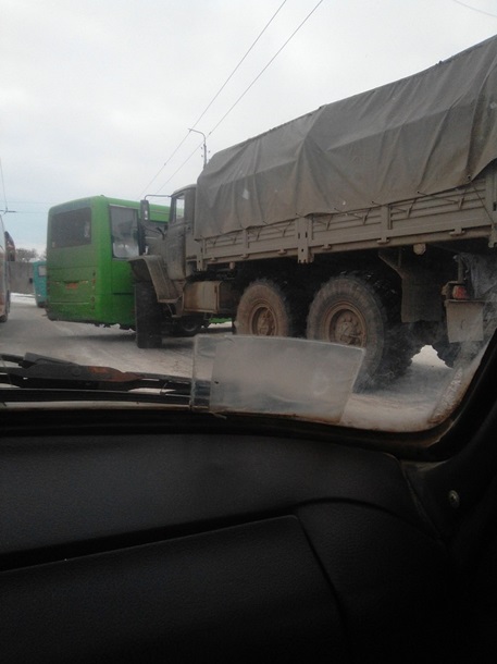 23 марта в Алчевске на ул. Кирова военнослужащие 4 омсбр "НМ ЛНР" в состоянии алкогольного опьянения на грузовом автомобиле "Урал" совершили наезд на пассажирский автобус с мирными жителями.