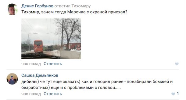 Пользователи социальных сетей в комментариях утверждают, что решать вопросы с "бухими" военными приехал с охраной лично "официальный представитель Народной милиции ЛНР" Андрей Марочко.