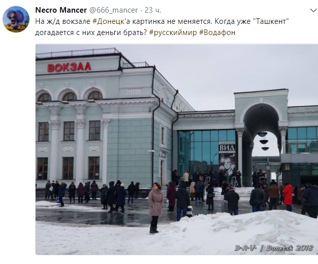 "На ж/д вокзале #Донецк'а картинка не меняется. Когда уже "Ташкент" догадается с них деньги брать?", - говорится в описании к снимку.