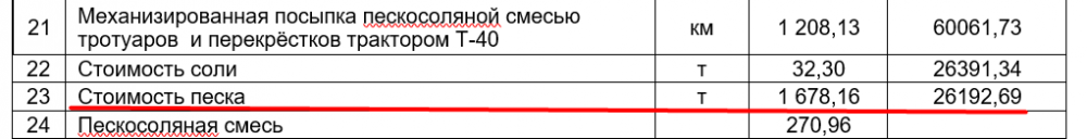 Так, в отчёте указано, что КП «Дорожно-эксплуатационное предприятие» в 2017 году закупило 1 678,16 т песка для механизированной посыпки пескосоляной смесью тротуаров и перекрёстков трактором Т-40.