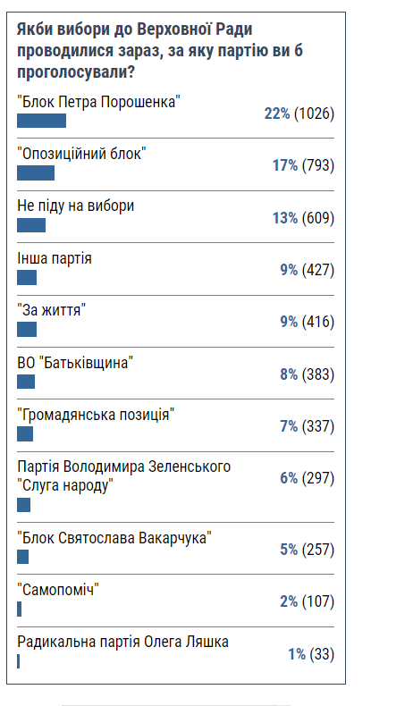 - Блок Петра Порошенко - 22 % (1026 респондентов)