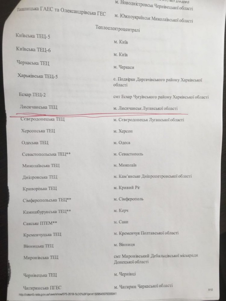 Кабинет министров Украины утвердил список предприятий для ведомственной охраны, в котором находится несуществующая Лисичанская ТЭЦ.