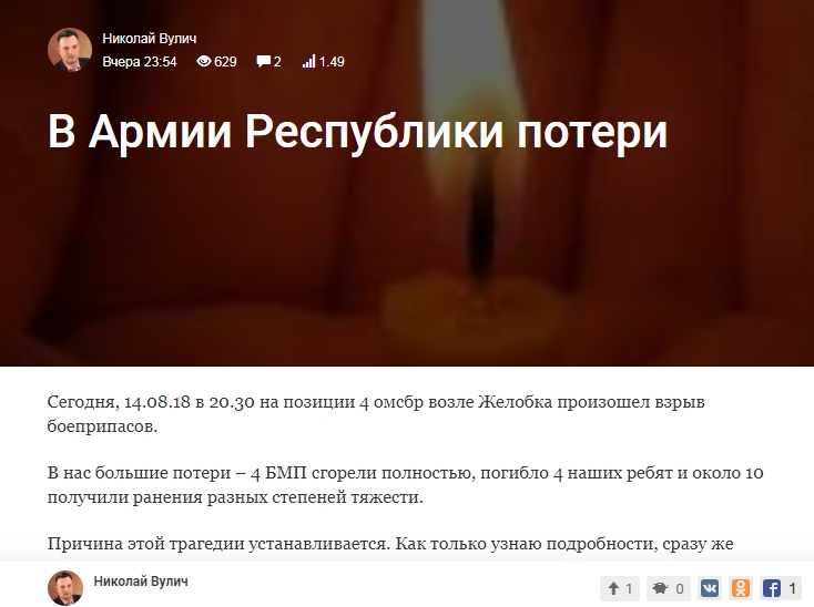 Об этом сообщил пророссийский блогер из Луганска Николай Вулич.