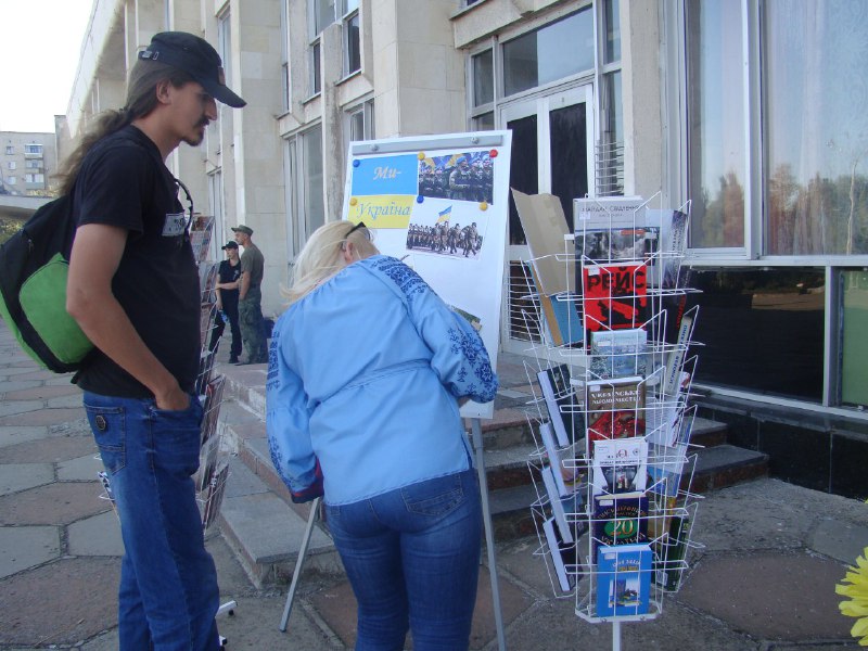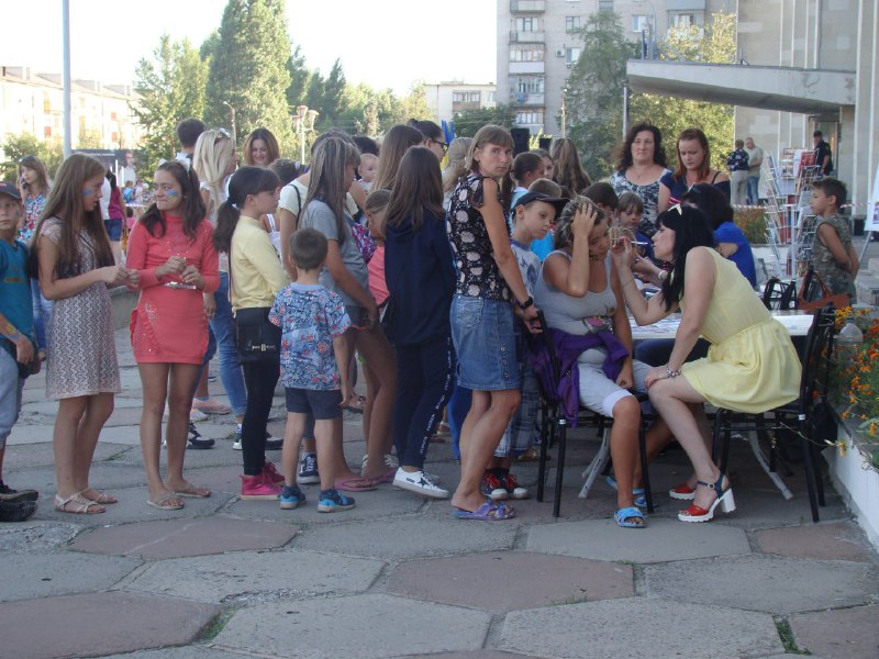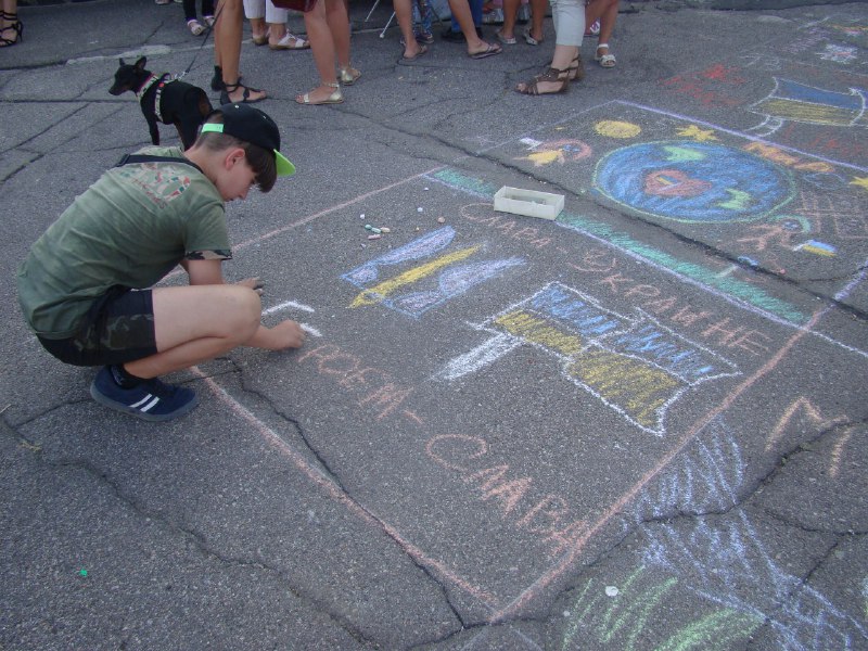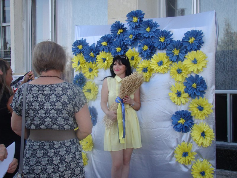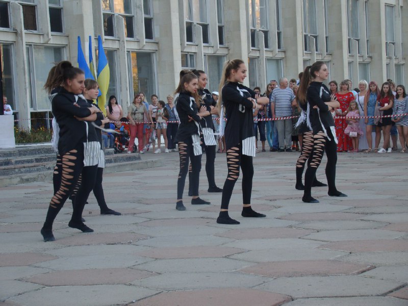 Позже праздничные действия проходили на Владимирской площади. Программа включала в себя детский конкурс рисунков на асфальте, игры и концерт, где выступали вокальные и танцевальные коллективы Дворца культуры. Желающие также могли сфотографироваться с украинской символикой и познакомиться с литературой про историю страны из собрания Центральной городской библиотеки.