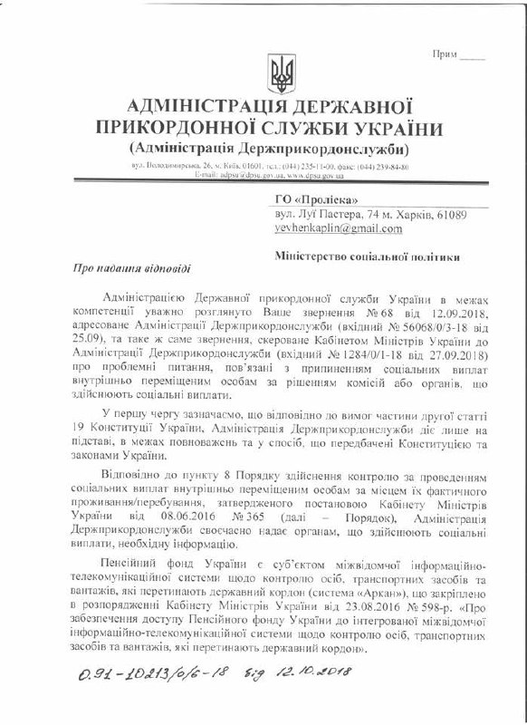 Приостановка пенсионных выплат переселенцам на основании информации базы данных "АРКАН" является незаконной. Об этом сообщает координатор Гуманитарной миссии "Пролиска" Евгений Каплин на своей странице в Фейсбуке на основании ответа Госпогранслужбы на его запрос.