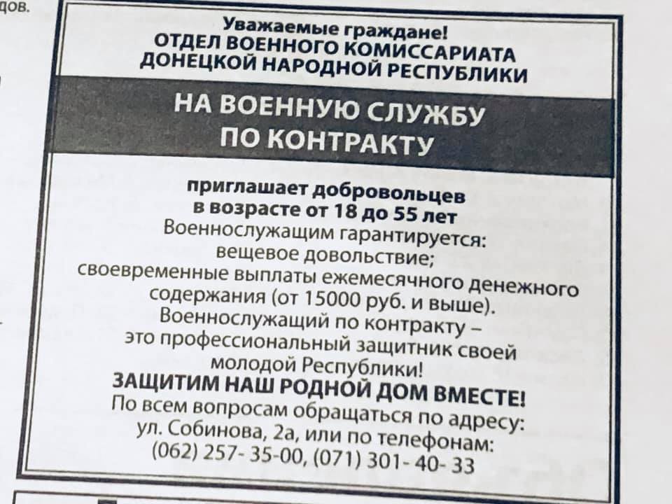 В неподконтрольных украинскому правительству районах Луганской и Донецкой областей возобновилась кампания по набору мужчин в НВФ группировок "ЛНР" и "ДНР".