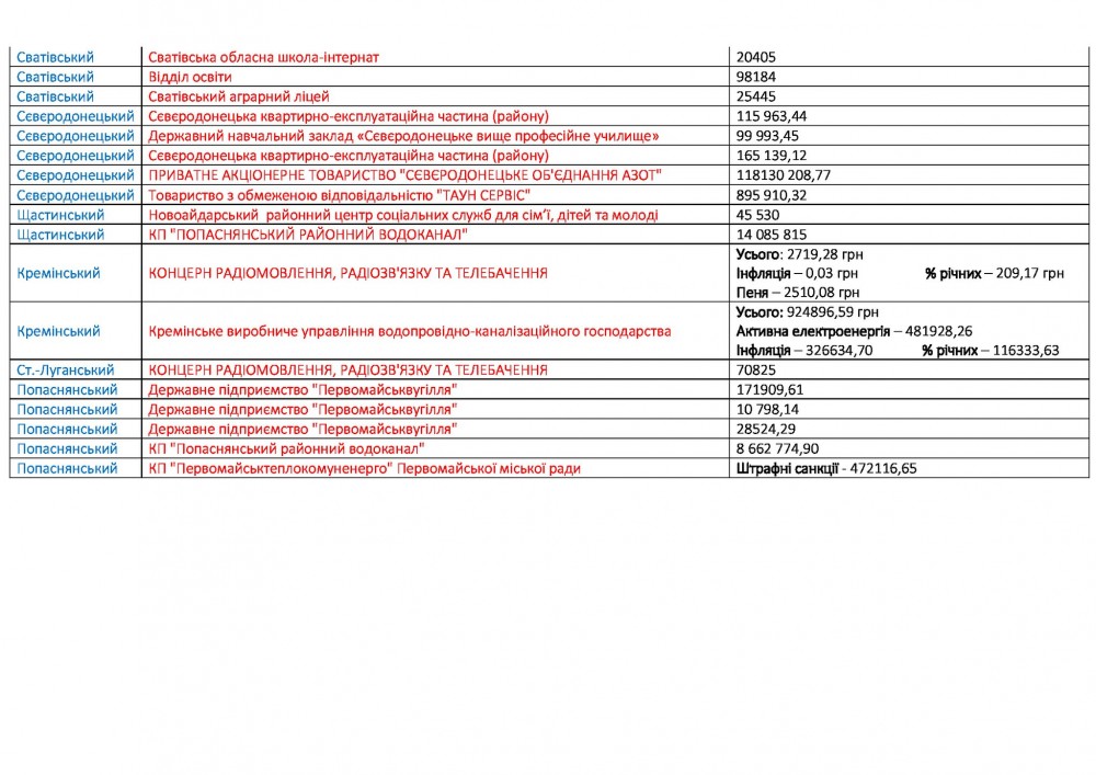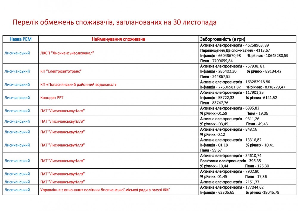 "Вот перечень предприятий, учреждений и организаций, находящихся в "группе риска". Они уже получили предупреждения об отключении электроэнергии. Поэтому у них еще есть время оплатить по счетам.