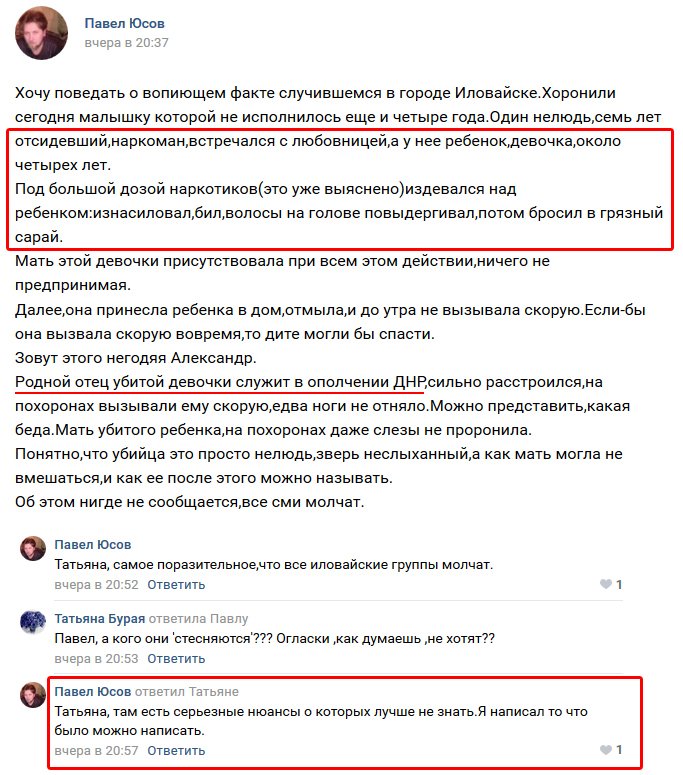 По его словам, преступление совершил ранее судимый любовник матери ребенка (Орфография и стиль автора сохранены)