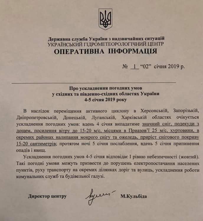 4–5 января ожидается ухудшение погодных условий в восточных и юго-восточных областях Украины.