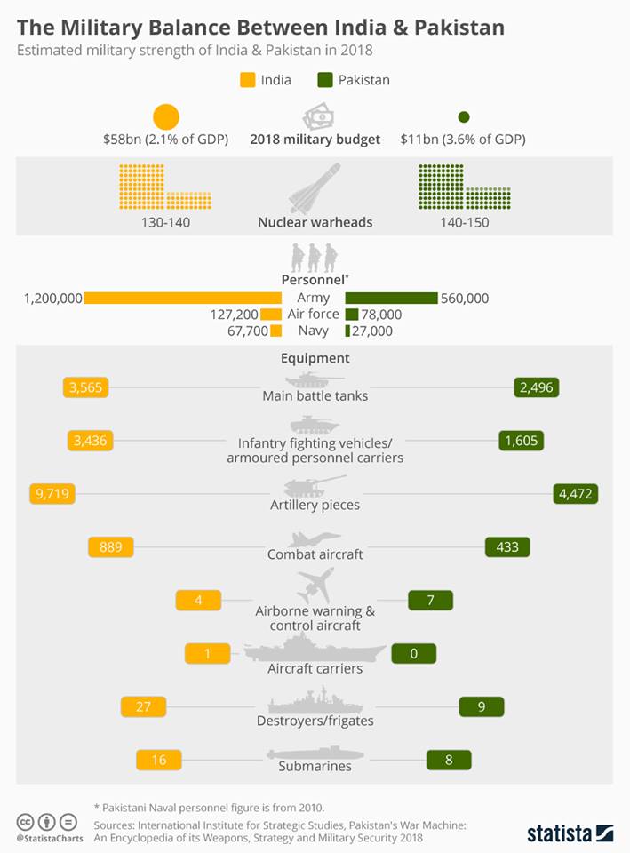 На диаграмме - военные арсеналы Индии и Пакистана.