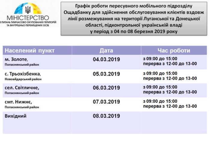 По 7 марта включительно вдоль линии разграничения на Луганщине будет работать передвижной мобильный пункт "Ощадбанка".
