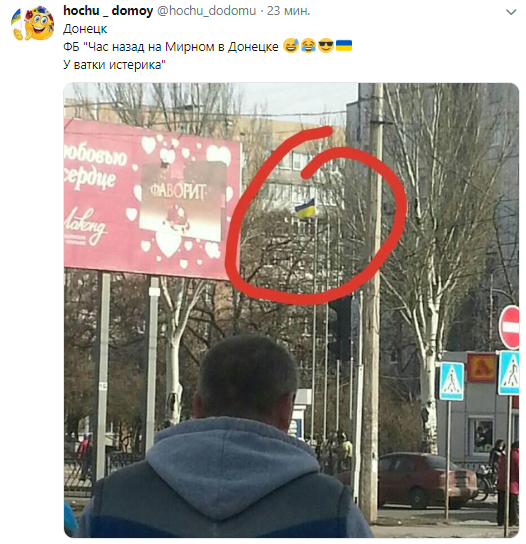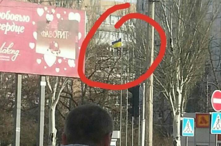 Сегодня, 14 марта, в микрорайоне Мирном оккупированного Донецка был замечен флаг Украины.