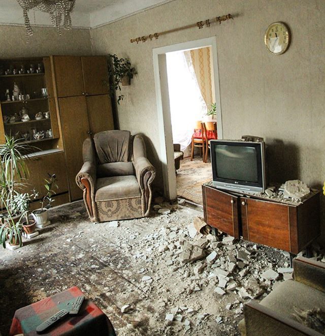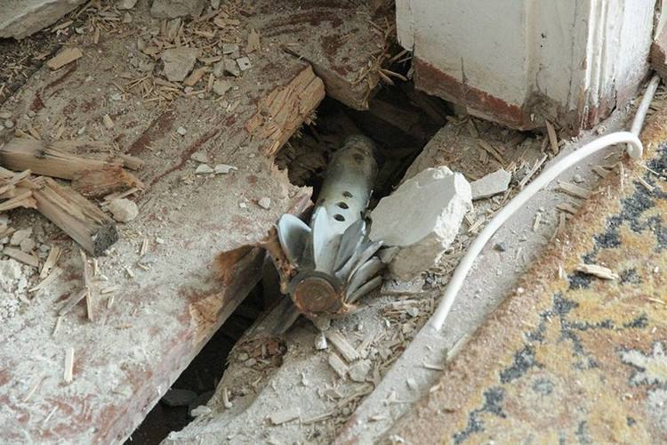 Хозяйка квартиры сообщила, что она была дома, когда мина попала в крышу. Однако, несмотря на значительные разрушения, сама хозяйка не пострадала.